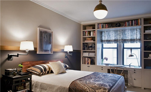 这款卧室主要是将它改造成一张书桌,这种方式在生活中比较普遍存在,非常的实用,不仅节约了空间;同时还能悠闲的坐在那里享受阅读时光,同时房间的色调与书桌的搭配看起来非常协调与美观。